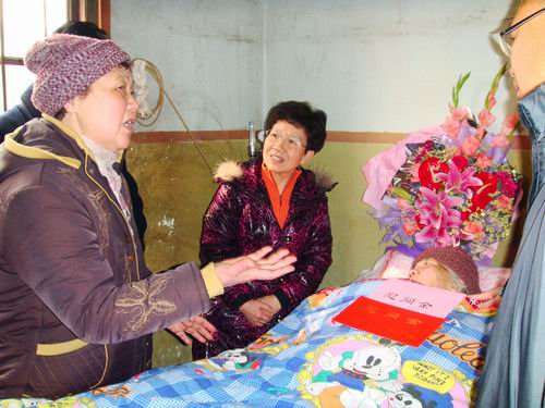 郁美蘭仔細詢問了日本歸僑肖紅子的病情和生活狀況,鼓勵她積極面對生活,并叮囑其子女悉心照顧老人,讓母親安度晚年。郁美蘭說,黨和政府高度重視和關(guān)心困難歸僑僑眷,各級黨委、政府和僑聯(lián)組織對困難歸僑僑眷的生活給予了積極的幫助,希望大家過一個平安、祥和的春節(jié)。