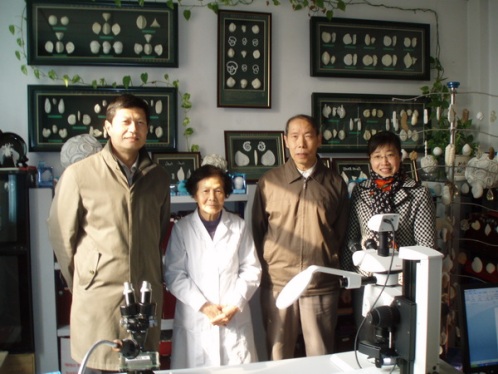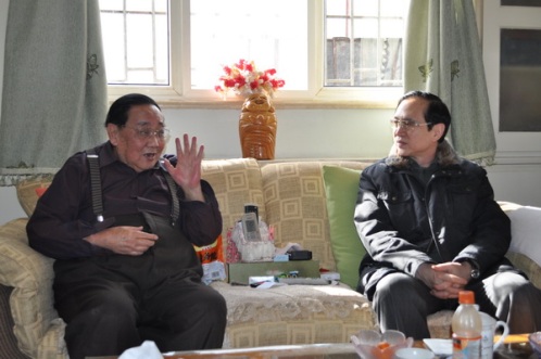青島市僑聯主席胡辛(左1)走訪慰問中科院海洋所研究員、菲律賓歸僑鄭守儀院士(左2)