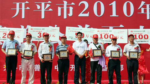 3月3日,開(kāi)平市在城市廣場(chǎng)舉行2010年慈善公益萬(wàn)人行活動(dòng)起步儀式,同時(shí)表彰了一批慈善活動(dòng)作出突出貢獻(xiàn)的海外僑胞、港澳同胞和海外社團(tuán)。據(jù)悉,今年以來(lái),該市慈善會(huì)共收到來(lái)自海外鄉(xiāng)親、社團(tuán)的捐款1366萬(wàn)多元,其中海外鄉(xiāng)親捐款達(dá)1297萬(wàn)元,涌現(xiàn)旅港鄉(xiāng)親譚逢敬先生捐款800萬(wàn)元,譚華正先捐款200萬(wàn)元等一批突出貢獻(xiàn)的熱心人士。開(kāi)平市委書(shū)記馮立堅(jiān)在慈善公益萬(wàn)人行活動(dòng)上,接受了海外僑胞和港澳鄉(xiāng)親熱心人士支票捐贈(zèng)儀式,并代表開(kāi)平市慈善會(huì)向譚氏宗親會(huì)、香港開(kāi)平同鄉(xiāng)會(huì)、澳門(mén)開(kāi)平同鄉(xiāng)會(huì)。旅港鄉(xiāng)親譚逢敬、譚華正、梁家熹、譚福添、吳漢良、譚錦濠、譚景彬、譚凱銘等善長(zhǎng)仁翁頒發(fā)慈善紀(jì)念牌匾予以表彰。
