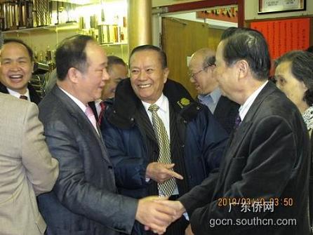 中新網3月12日電 據廣東僑網消息,3月9日下午,剛抵達加拿大滿地可的廣東省僑辦主任吳銳成,即率領訪問團深入僑社拜訪。僅僅半天時間,訪問團先后拜訪了滿地可中華文化宮、洪門民治黨滿地可分部、柬華會館、魁省潮州會館,與僑界各方人士進行了座談交流。晚上,出席了由滿地可華社舉辦的歡迎晚宴,有24個華人團體130名僑胞參加。