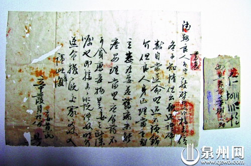 上圖為泉州市檔案館收藏的最早的僑批,系1911年十一月初八,一名晉江安海人的妻子寄給遠在菲律賓的丈夫的“回批”(回信),信中還寫到將丈夫寄來的錢都用在了哪里。“回批”是僑批的一種,由于是由故鄉人寄往海外的回信,所以目前國內數量不多,更加珍貴。(葉舒雯 陳一妮)