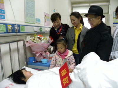 在病房里,槐蔭區僑聯主席孫嫣玲仔細詢問了小彩云的治療康復情況,并鼓勵小彩云積極配合醫生治療,爭取早日康復。孫嫣玲6歲的女兒還主動拿出自己的1000元壓歲錢送給小彩云,祝愿小彩云快點好起來。