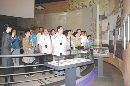 當(dāng)天下午,胡運(yùn)熹一行一踏上老家駱駝這塊土地就感到非常興奮,在鎮(zhèn)海新城管委會(huì),聽取了新城規(guī)劃介紹,觀看了沙盤,更是深有感觸。隨后,胡運(yùn)熹一行來到寧波幫博物館,走過“時(shí)光甬道”,先后參觀了寧波幫博物館序廳、篳路藍(lán)縷、建功立業(yè)、赤字情懷、群星璀璨和薪火永傳等展區(qū)。“小白菜,嫩艾艾,丈夫出門到上!碑(dāng)解說員用寧波話朗讀出一句句寧波民謠時(shí),構(gòu)起了他們童年時(shí)的記憶,海外僑領(lǐng)們熱烈鼓掌,并對寧波商幫文化的精髓與傳承表示稱贊。胡運(yùn)熹一行來到鎮(zhèn)海應(yīng)行久外語實(shí)驗(yàn)學(xué)校, 在參觀了體藝館、多媒體教室、語音實(shí)驗(yàn)室等處后,胡運(yùn)熹連連感慨校園的巨大變化。同時(shí)他對該校“為了一切學(xué)生的健康成長,促進(jìn)每個(gè)學(xué)生的最優(yōu)發(fā)展”的教學(xué)理念表示由衷的贊賞。他說,鎮(zhèn)海在培養(yǎng)人才方面,有這樣好的學(xué)校、這樣的優(yōu)秀的老師,我們的下一代將會(huì)有更好的遠(yuǎn)景,我們的祖國也會(huì)給世界一個(gè)全新的面貌。