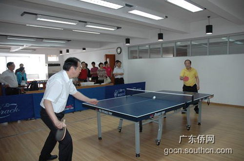中新網5月17日電 據廣東僑網消息,5月14日下午,廣東省僑辦文體活動中心人聲鼎沸,一片歡騰,廣東省僑辦與廣州市僑辦的干部職工正在舉辦“迎亞運”乒乓球友誼賽。