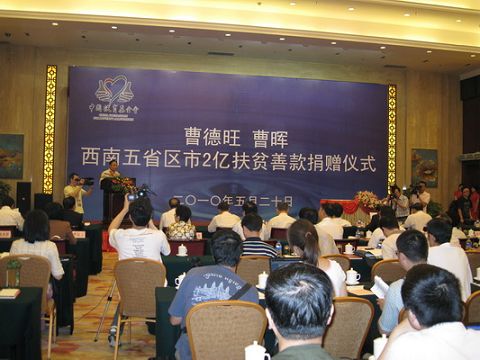 中新網5月26日電 據云南僑辦網站消息,5月20日,“曹德旺曹暉向西南五省區市捐贈2億扶貧善款儀式”于昆明舉行。這是繼向玉樹捐贈1億元人民幣之后,曹德旺曹暉父子又以個人名義向云南、廣西、貴州、重慶與四川西南五省市貧困家庭捐贈善款2億元,其中云南獲贈7000萬元。據了解,2億元善款也是國內迄今為止最大的一次性個人公益捐款。