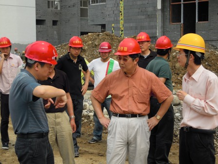 在中國僑聯援建北川中學指揮部指揮長劉奇、副指揮長王厚增、羅顯禮、蔣蓓,北川縣副縣長周福蘭等人的陪同下,喬衛深入施工現場,逐樓詳細查看了施工建設情況,并召開會議聽取援建指揮部、設計、施工、監理和審計等參建單位的工作匯報,協調了有關問題。