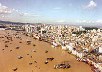 澳 門 地 區 包 括 澳 門 半 島 及 其 南 面 的 凼 仔 島 和 路 環 島 , 總 面 積 23.5 平 方 公 里 , 人 口 40 多 萬 。 從 地 圖 上 看 , 澳 門 猶 如 一 朵 蓮 花 , 盛 開 在 中 國 珠 江 三 角 洲 南 端 。 它 東 與 香 港 遙 遙 相 對 , 相 距 42 海 里 ; 北 與 廣 東 珠 海 陸 地 相 連 , 直 通 內 地 。