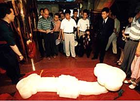 一柄巨型玉雕“中華如意”,周日在泉州舉辦的第三屆世界福建同鄉(xiāng)懇親大會上首次展示玉身。這柄即將獻給未來澳門特別行政區(qū)的如意,采用天山白云玉精心雕琢而成,全長一千九百九十毫米、寬六百六十毫米,為“中華如意”之最。