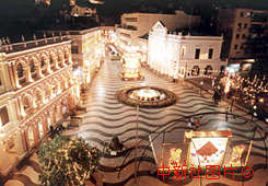 澳門議事亭前地,又稱市政廳前地,兩側建筑多融中西風格,是澳門著名的旅游地。