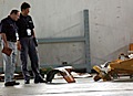 42. 圖:專(zhuān)家檢查打撈起的飛機(jī)殘骸(5月28日 18:30)