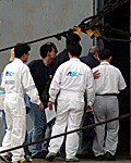 43. 圖:臺(tái)灣重兵把守打撈起的失事"華航"客機(jī)殘骸(5月28日 18:25)