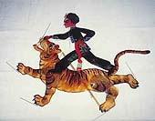 由于這種藝術(shù)歷史悠久,源遠(yuǎn)流長(zhǎng),所以其流傳范圍極廣,名稱也不同;因其演員只有一人,故南方各省稱之為“單人班”;因表演時(shí)人藏在布帷之中,故四川省稱之為“被單戲”;又因以扁擔(dān)挑道具并支撐臨時(shí)搭起的小戲臺(tái),故在河北吳橋等地稱為“扁擔(dān)戲”。有關(guān)傀儡戲的表演方式及特點(diǎn),可見《揚(yáng)州畫舫錄》中一段記載:“圍布作房,支以一木,以五指運(yùn)三寸傀儡,金鼓喧鬧,詞、白皆用叫嗓子,均一人為之,謂之扁擔(dān)戲。”