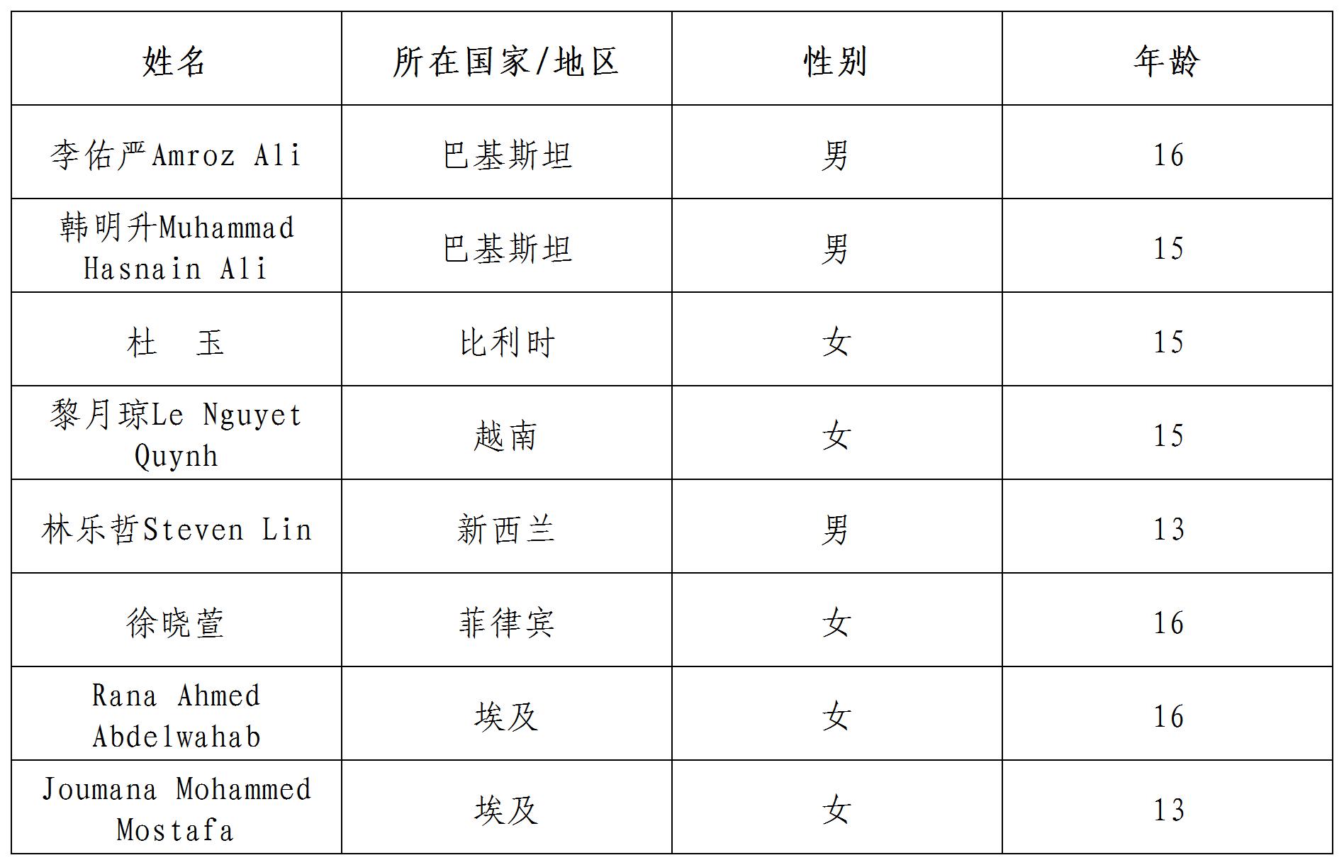 備注:標注國家以參與者報名時駐在國為準。